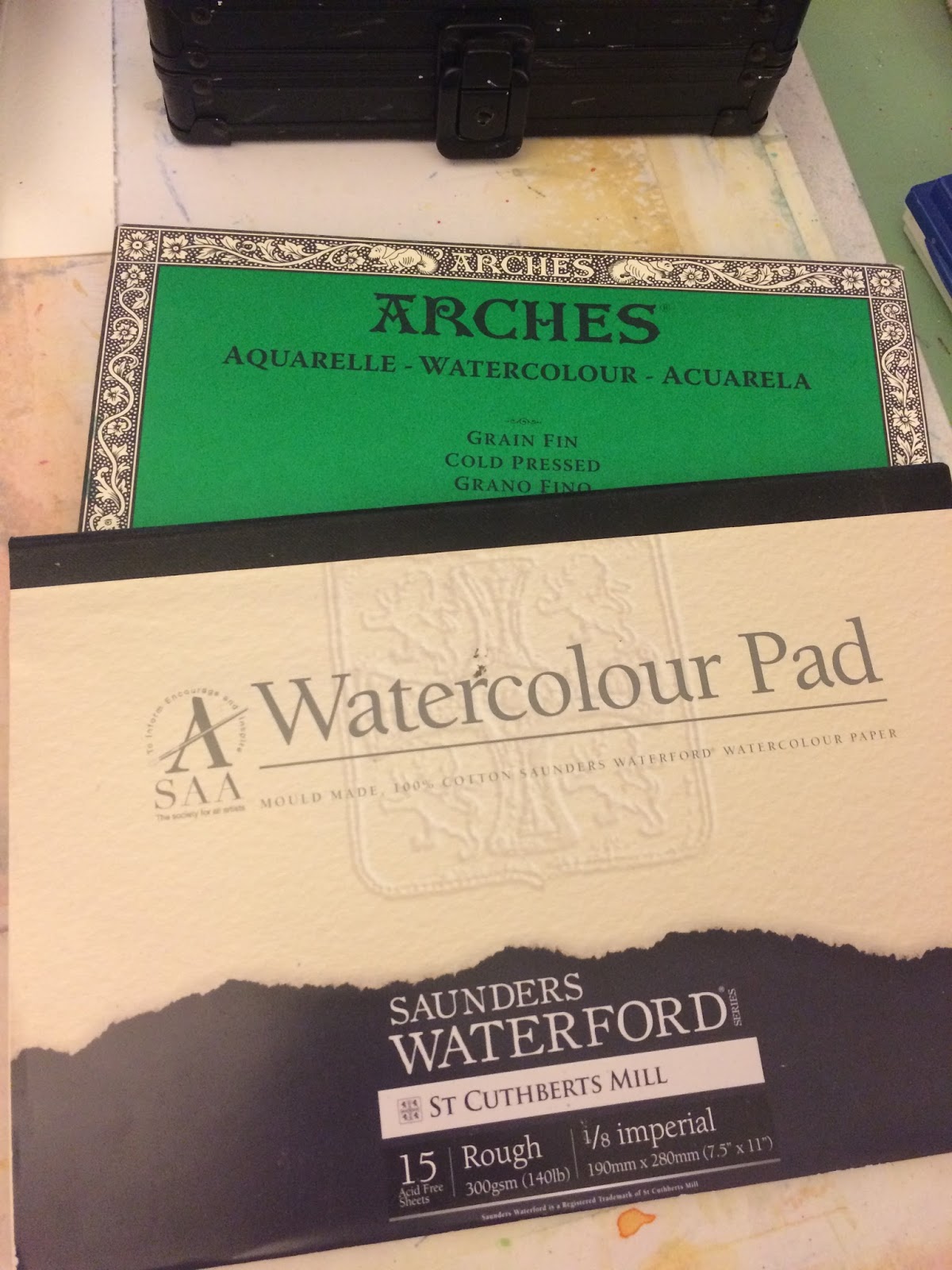 I have about three different papers I paint on, Arches, Fabriano and Moulin du Roy for sheets and Saunder's Waterford and Arches for blocks and pads.
